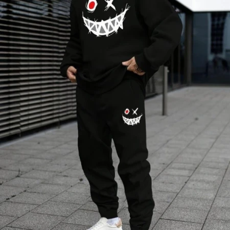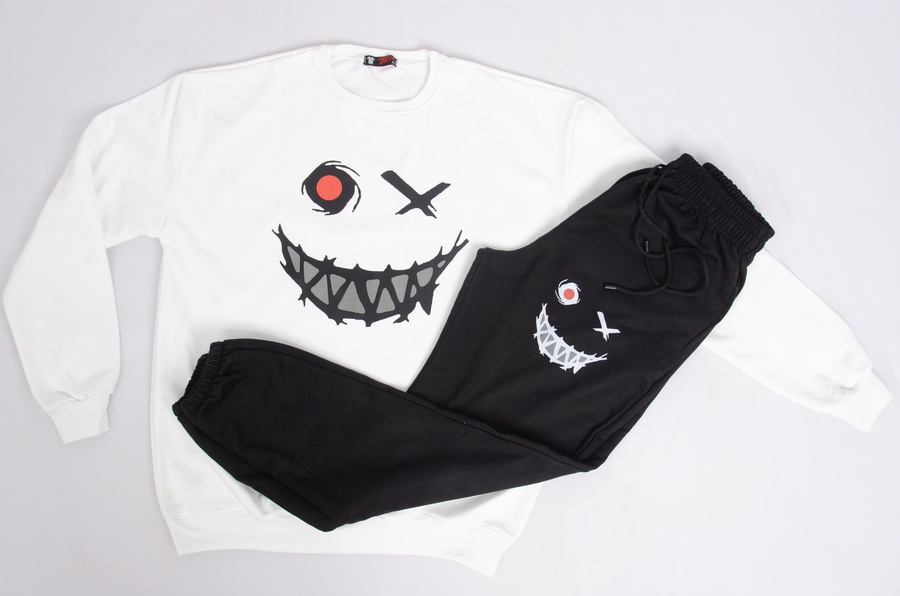 ترينج رجالي XO مصنوع من خامة ميلتون، يتميز برسمه جذابة تحمل تصميم "XO". القماش ناعم ومرن، مما يوفر راحة أثناء الحركة. يحتوي التصميم على خصر مطاطي، مع سراويل تناسب الجسم. متوفر بالون ابيض واسود مما يتيح خيارات متنوعة للتنسيق. يعتبر الخيار المثالي للتمارين أو للراحة في اي مكان